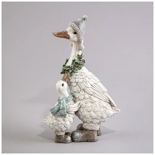 Статуэтка Гуси от бренда Lefard — это декоративный элемент, который добавит праздничное настроение и уют в любой интерьер. Изделие выполнено из полистоуна, что обеспечивает его долговечность и устойчивость к повреждениям. Размеры статуэтки составляют 14,5х13,5х27,5 см.