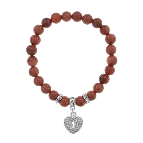 Стрейч-браслет из коричневого авантюрина с подвеской в виде сердца.