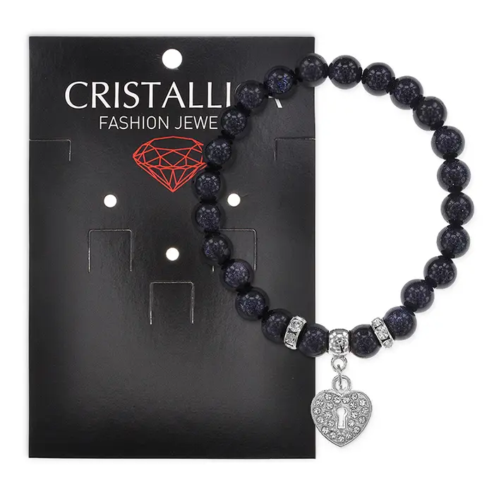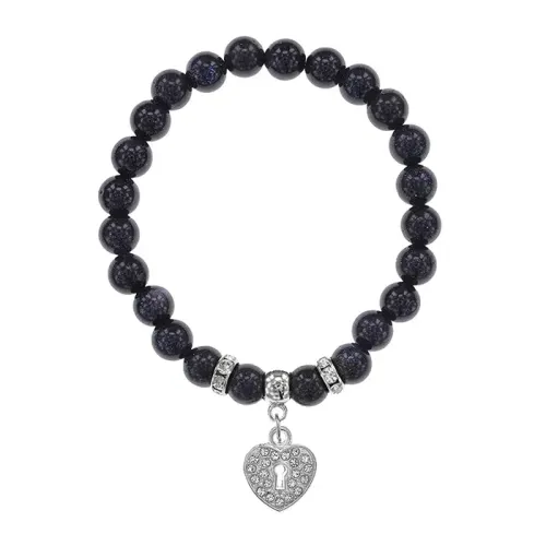 Стрейч-браслет из синтетического камня синий авантюрин с подвеской в виде сердца.