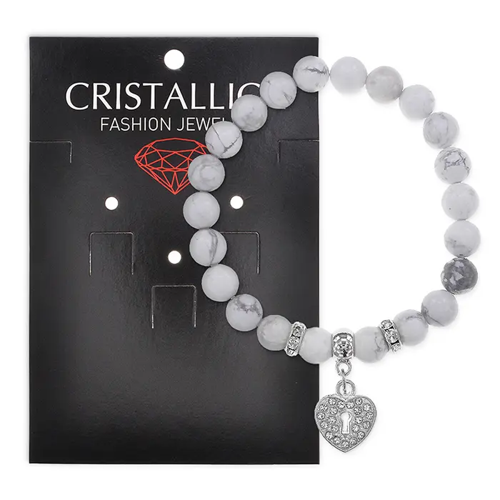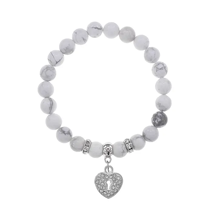 Стрейч-браслет из натурального камня кахолонг с подвеской в виде сердца.