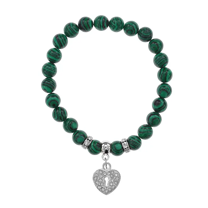 Браслет Сердце (Любовь и Семейное Счастье) синт.камень Малахит 8мм BS-CR-0042