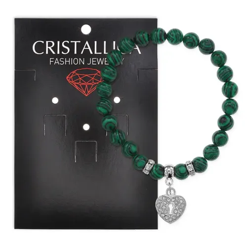 Стрейч-браслет коллекции Cristallica из синтетического камня малахит, украшенный стразами.