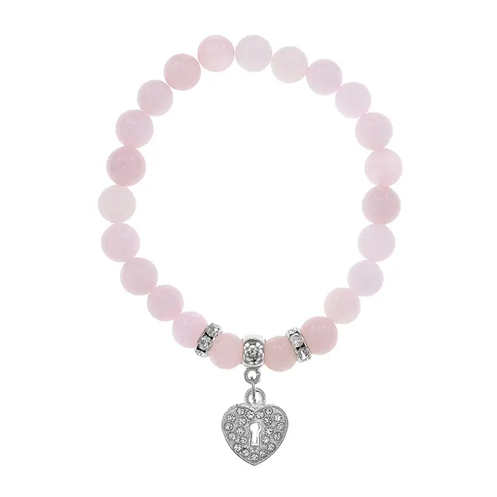 Стрейч-браслет из натурального розового кварца с подвеской в виде сердца.
