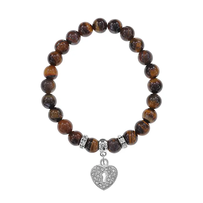 Браслет Сердце (Любовь и семейное счастье) нат.камень Тигровый глаз 8мм BS-CR-0049