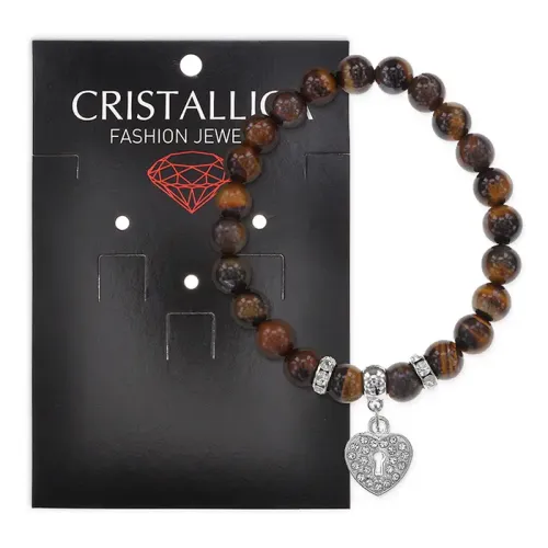 Стрейч-браслет из натурального камня тигровый глаз с подвеской в виде сердца.