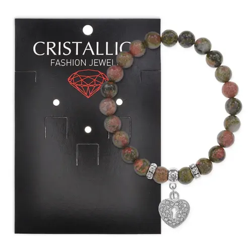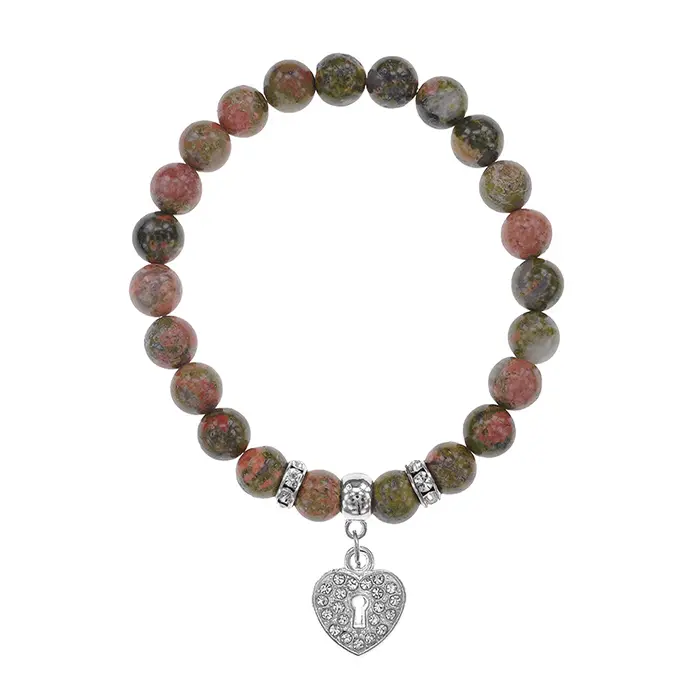 Браслет Сердце (Любовь и семейное счастье) нат.камень Унакит 8мм BS-CR-0050