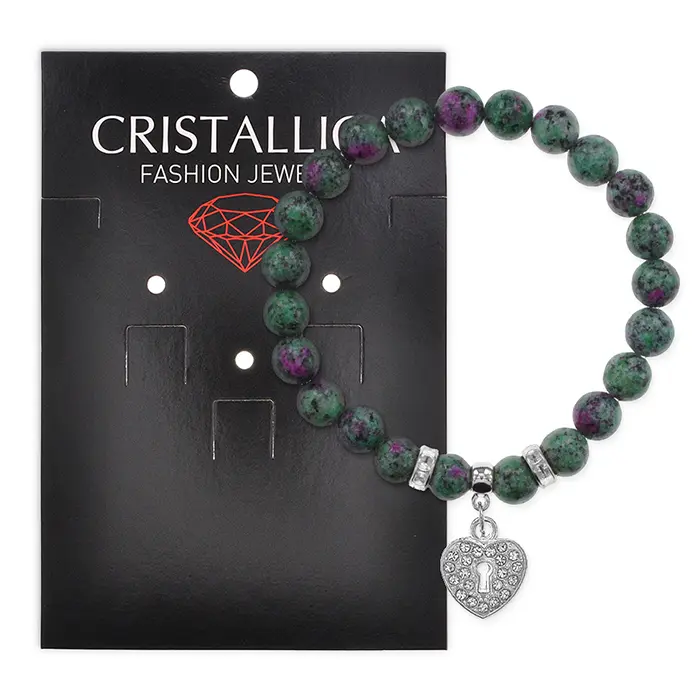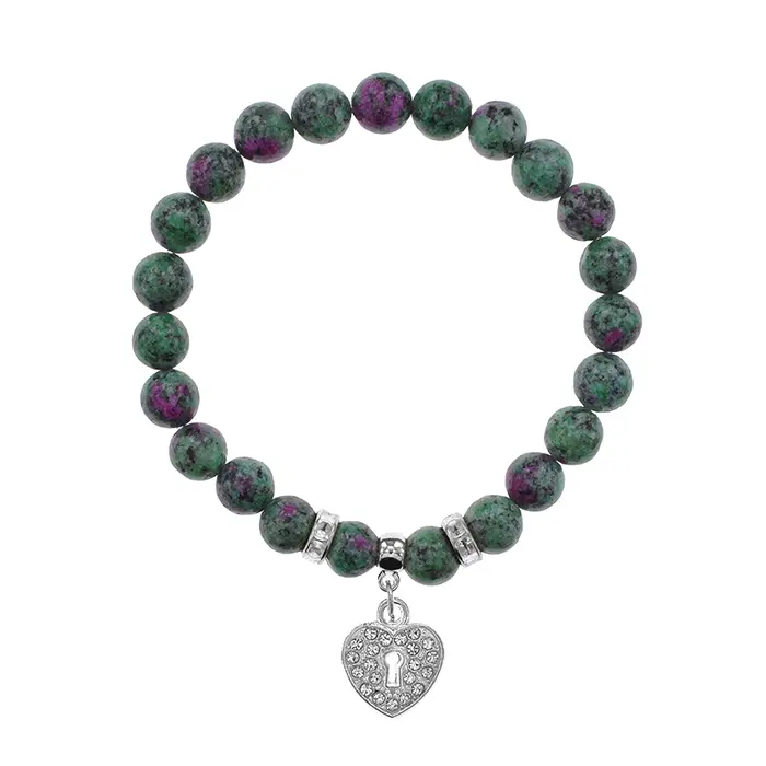 Браслет Сердце (любовь и семейное счастье) синт.камень Цоизит 8мм BS-CR-0052