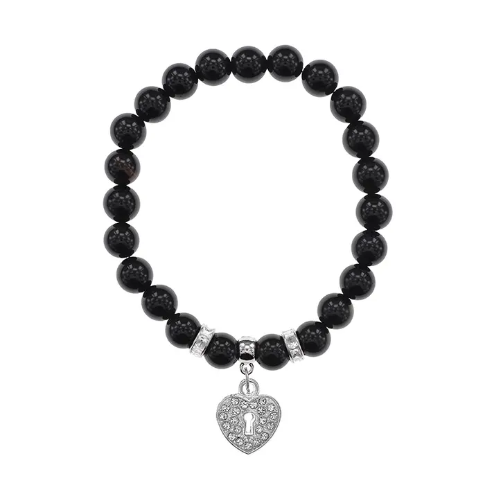 Браслет Сердце (Любовь и семейное счастье) нат.камень Черный агат 8мм BS-CR-0053