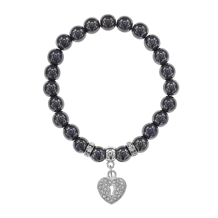 Браслет Сердце (Любовь и семейное счастье) синт.камень Гематит 8мм BS-CR-0058