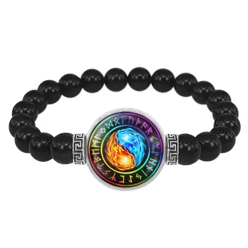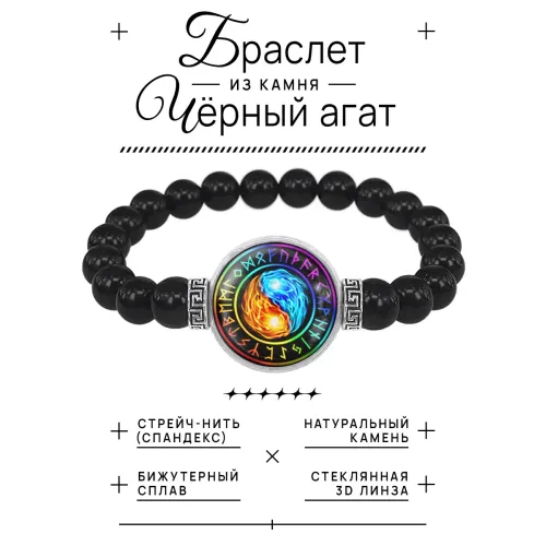 Размеры и комплектация: Диаметр бусин 8 мм, диаметр изображения 20 мм. Внутренний диаметр браслета примерно 5.5 см. Упаковка — прозрачный полипропиленовый пакет.