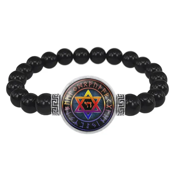 Браслет из черного агата Звезда Давида BSBA-008
