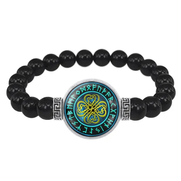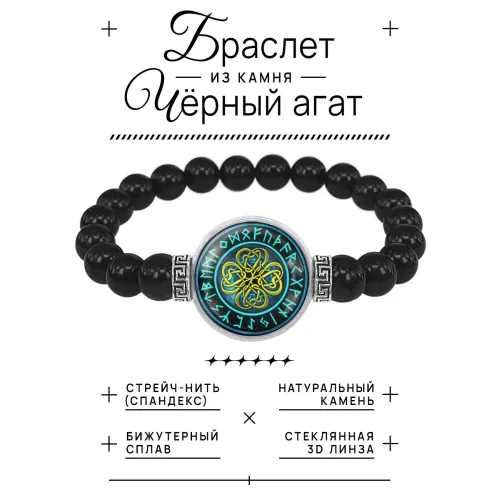 Размеры и комплектация: Диаметр бусин 8 мм, диаметр центрального изображения 20 мм. Внутренний диаметр браслета ~5.5 см. Упаковка — прозрачный полипропиленовый пакет.