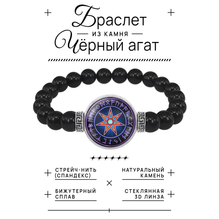 Браслет из черного агата Звезда магов BSBA-012