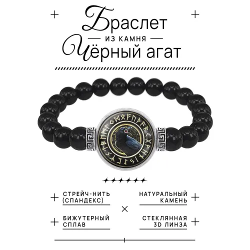Браслет из черного агата Ворон BSBA-027