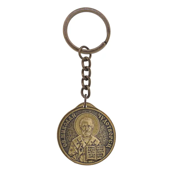Брелок с изображением святых, изготовленный из латуни.