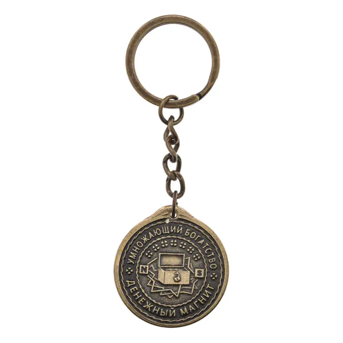 Брелок Счастливая монета/Денежный магнит, латунь, 8,5х3см V-BM028