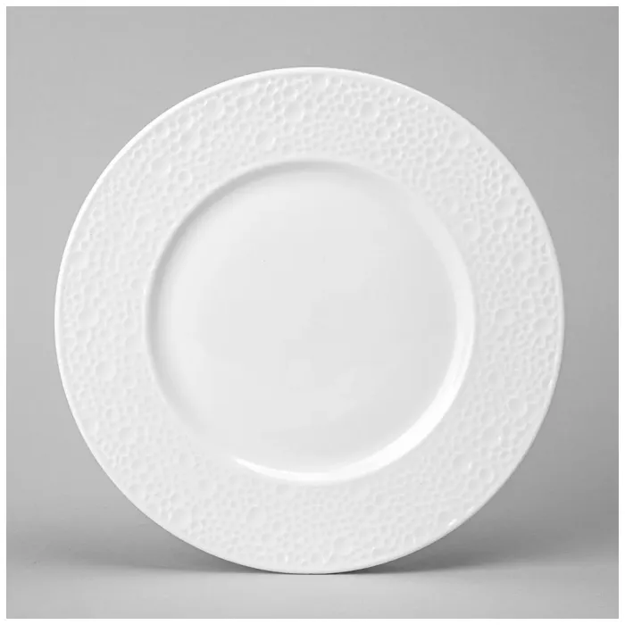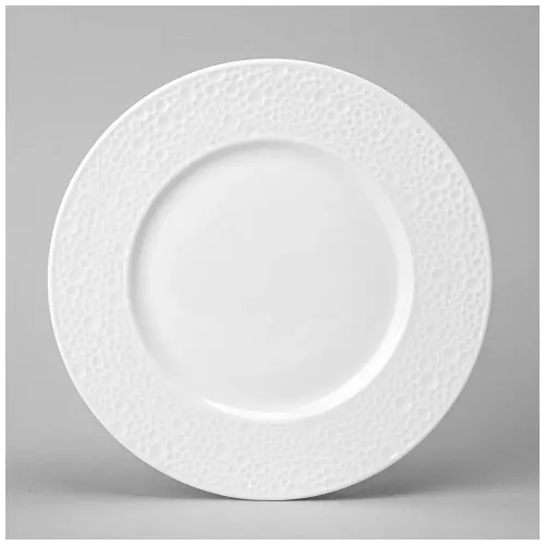 Тарелки изготовлены из фарфора, что обеспечивает высокую прочность, термостойкость и гигиеничность благодаря технологии обжига при высокой температуре. Белоснежная поверхность устойчива к царапинам. Рельефный узор нанесён на поверхность, выполняя декоративную функцию.