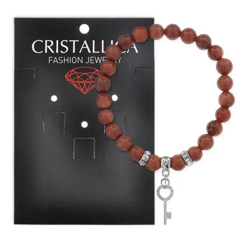 Стрейч-браслет из коллекции Cristallica с подвеской в виде ключа и бусинами из коричневого авантюрина.