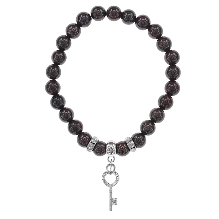 Браслет Ключ (счастье) нат.камень Гранат 8мм BS-CR-0096