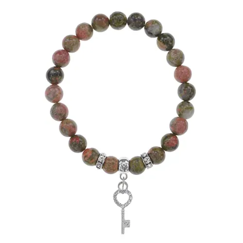 Браслет Ключ (счастье) нат.камень Унакит 8мм BS-CR-0110
