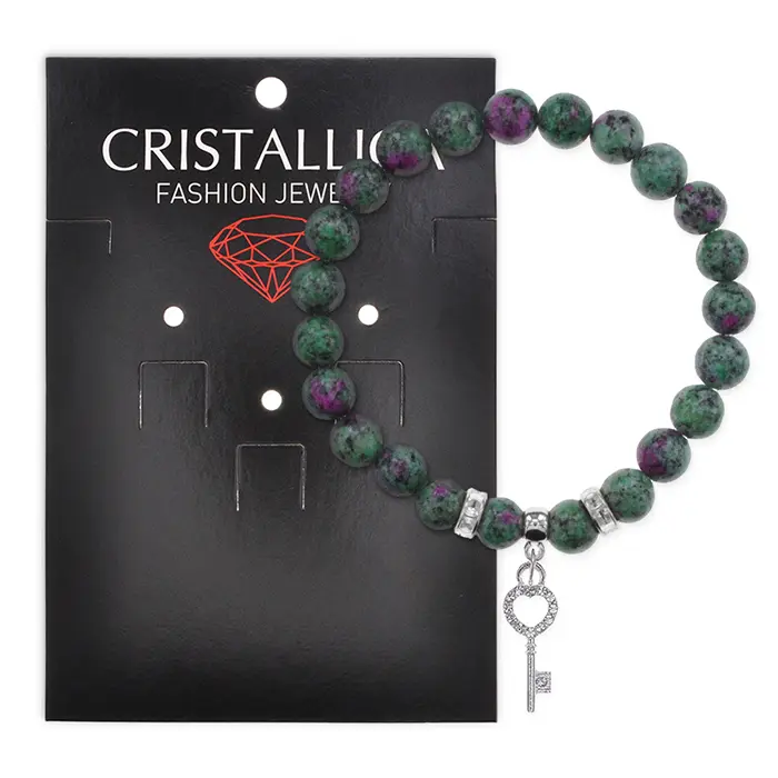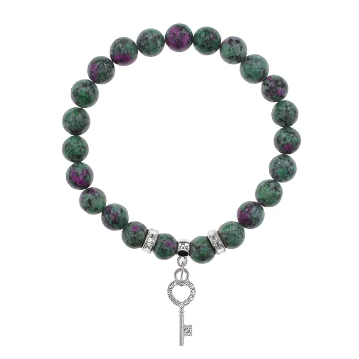 Браслет Ключ (счастье) синт.камень Цоизит 8мм BS-CR-0112
