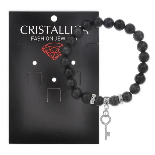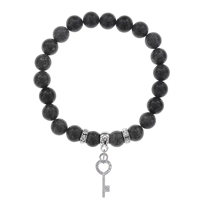 Стрейч-браслет из натурального камня змеевик с подвеской в виде ключа.