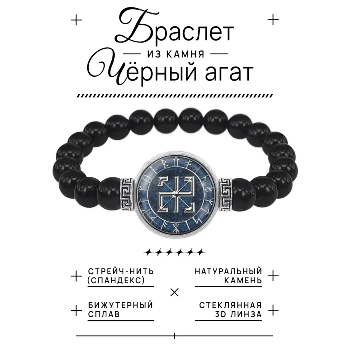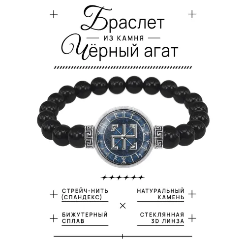 Материал и изготовление: Бусины из черного агата диаметром 8 мм. Основное изображение диаметром 20 мм защищено стеклянной линзой.
