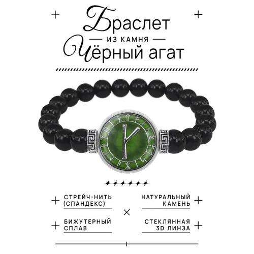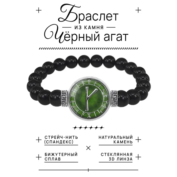 Размеры и комплектация: Диаметр бусин: 8 мм. Диаметр центрального изображения: 20 мм. Внутренний диаметр браслета: ~5.5 см. Упаковка: прозрачный полипропиленовый пакет.