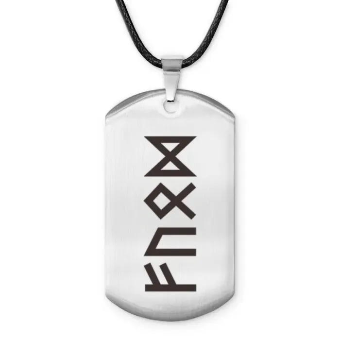 Амулет-жетон для сувенирных целей, выполненный из полированной нержавеющей стали с гравировкой рун.