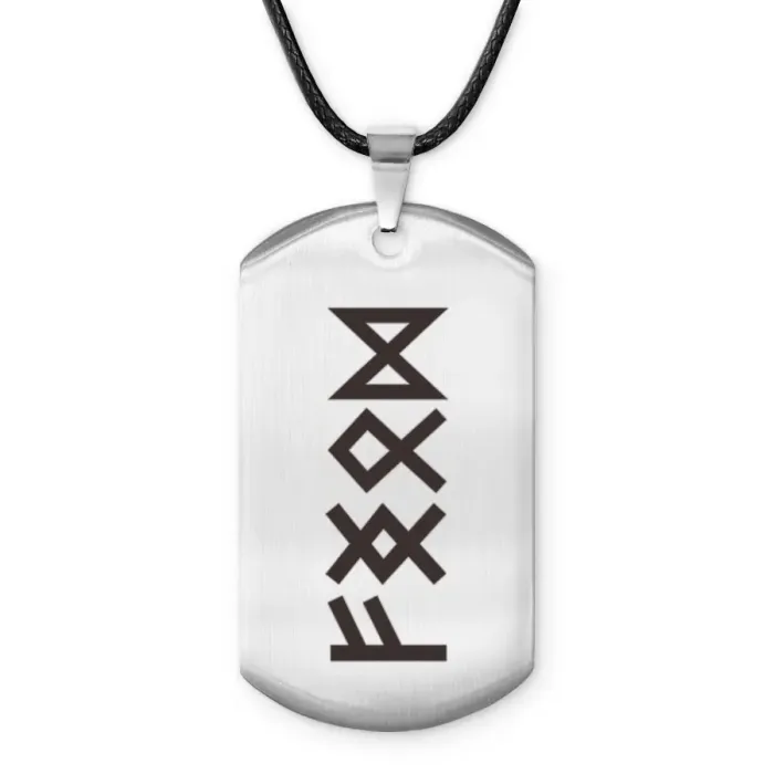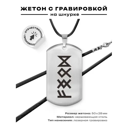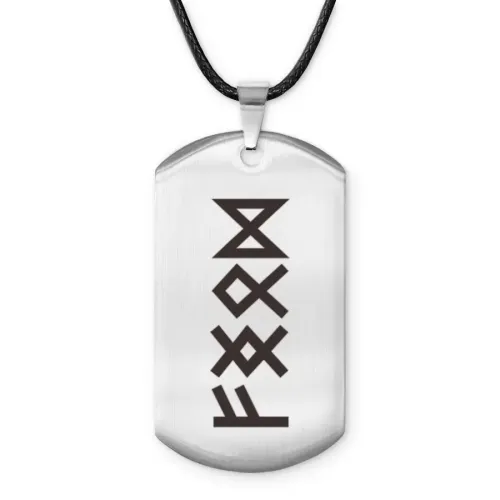 Амулет-жетон из полированной нержавеющей стали с руническим дизайном.