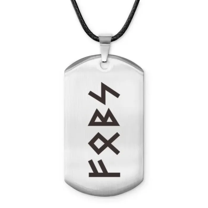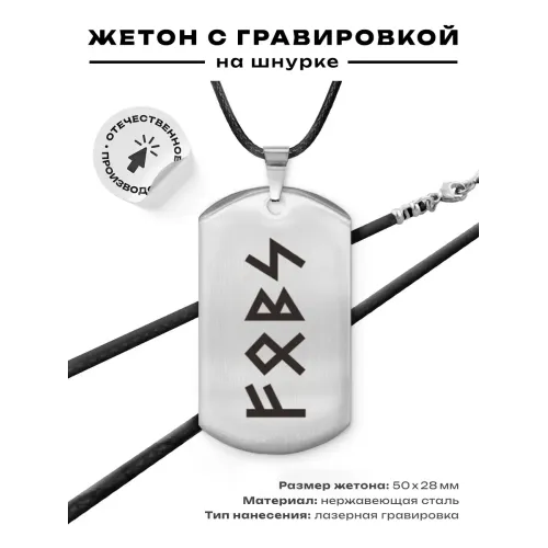Амулет-жетон для сувенирного или личного использования, выполнен из нержавеющей стали с нанесёнными рунами.