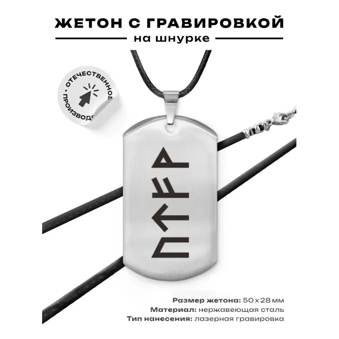 Амулет-жетон «Работа и карьера» выполнен из полированной нержавеющей стали с гравировкой рун.
