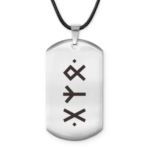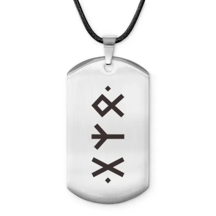Амулет-жетон для сувенирного или личного использования из полированной нержавеющей стали с нанесёнными руническими символами.