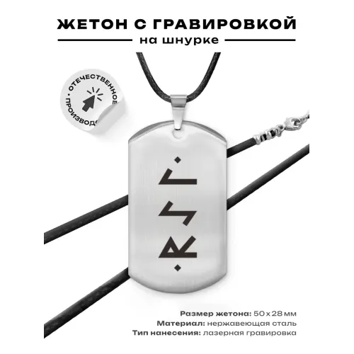 Амулет-жетон с руническим символом, выполненный из нержавеющей стали.