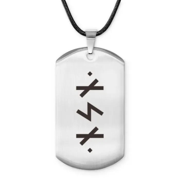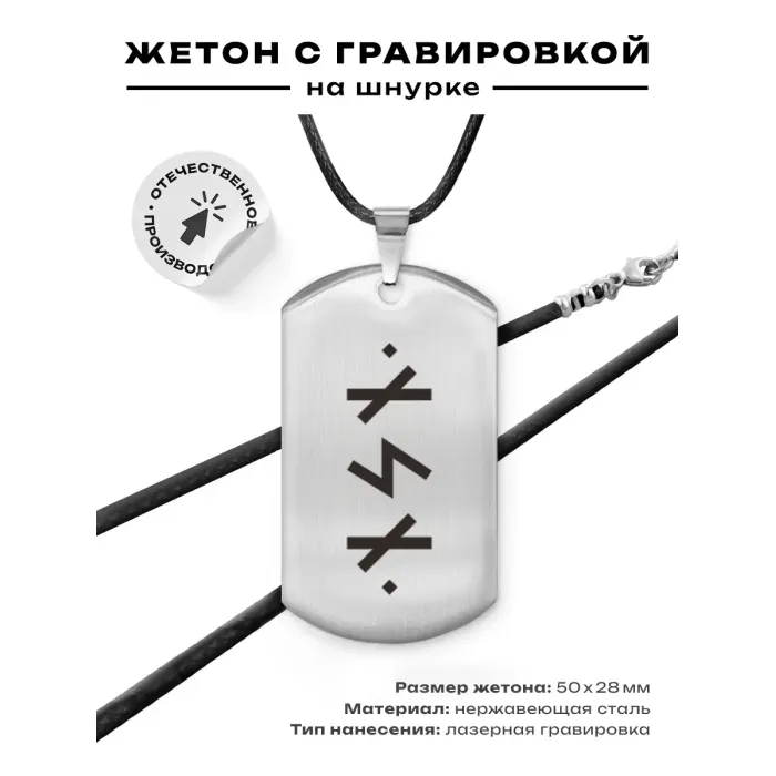 Амулет-жетон из полированной нержавеющей стали с нанесёнными рунами Наутиз и Соулу.