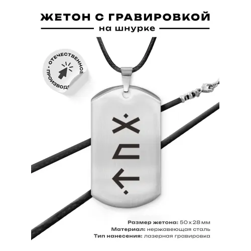 Амулет-жетон сувенирный, выполнен из нержавеющей стали с полированной поверхностью. На жетоне изображены руны Тейваз, Уруз и Гебо.