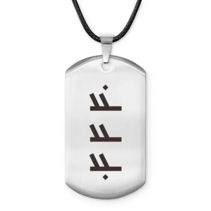 Амулет-жетон для сувенирных целей, изготовлен из полированной нержавеющей стали, украшен рунами.