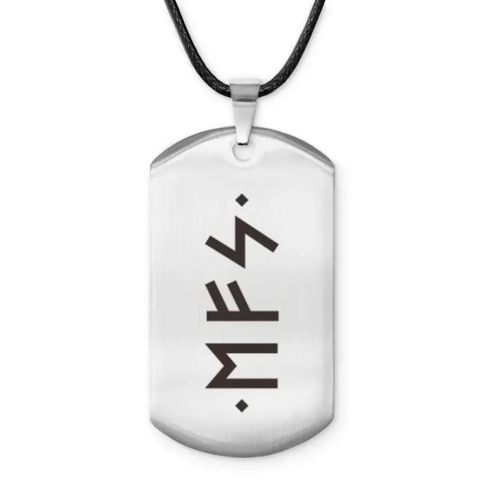 Амулет-жетон Прорыв в бизнесе, выполненный из полированной нержавеющей стали с нанесёнными рунами.