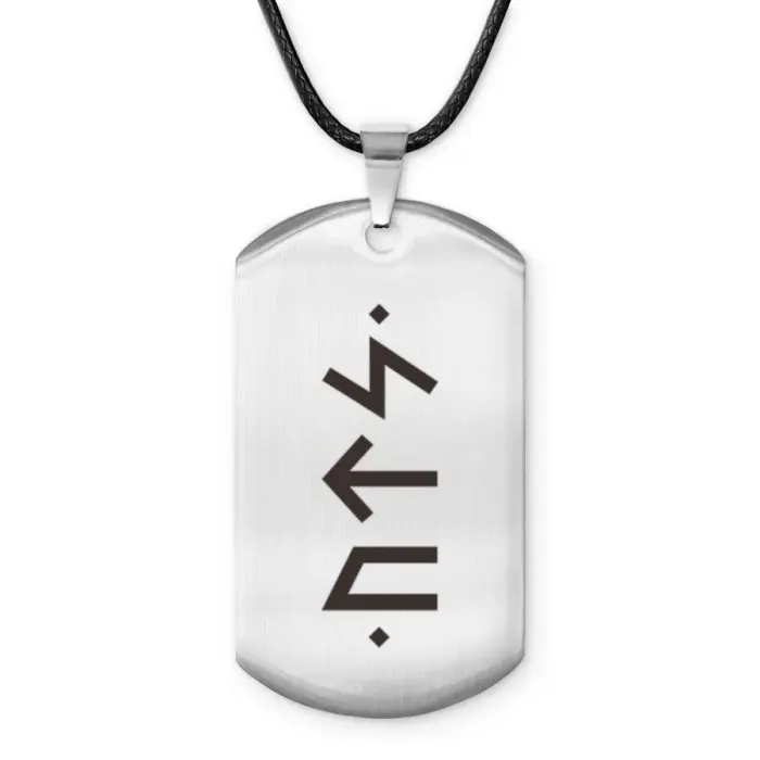 Амулет-жетон Энергетическая формула ACZ-705 — сувенирный аксессуар из полированной нержавеющей стали с дизайном, включающим руны Уруз, Тейваз и Соулу.