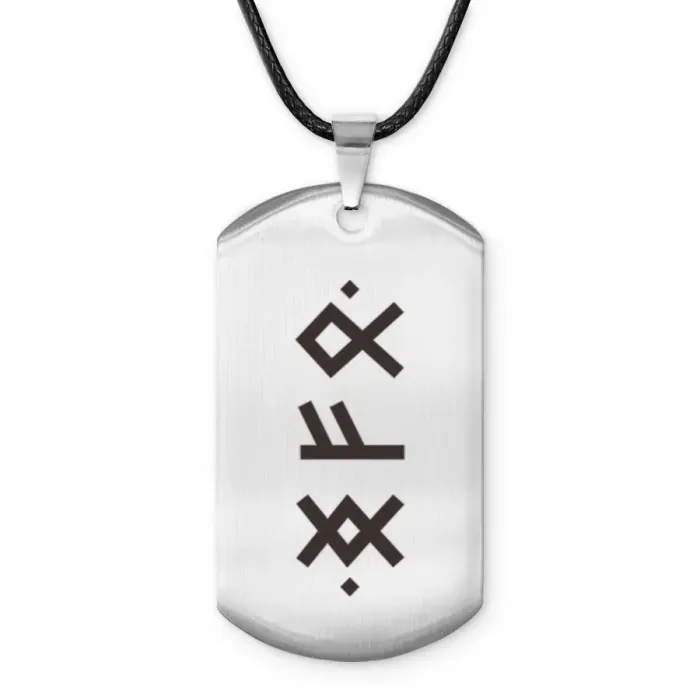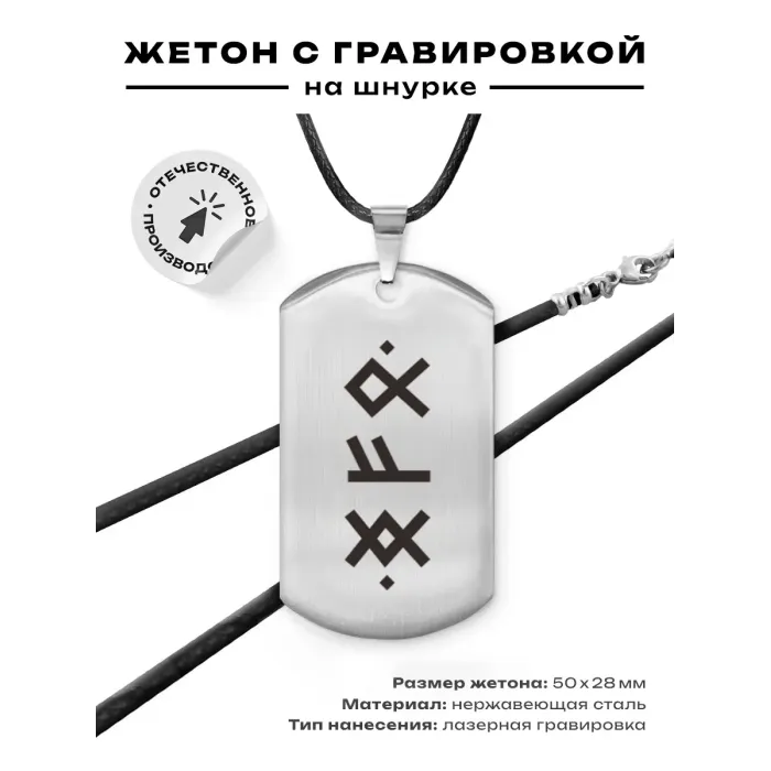 Амулет-жетон из нержавеющей стали с руническим дизайном.