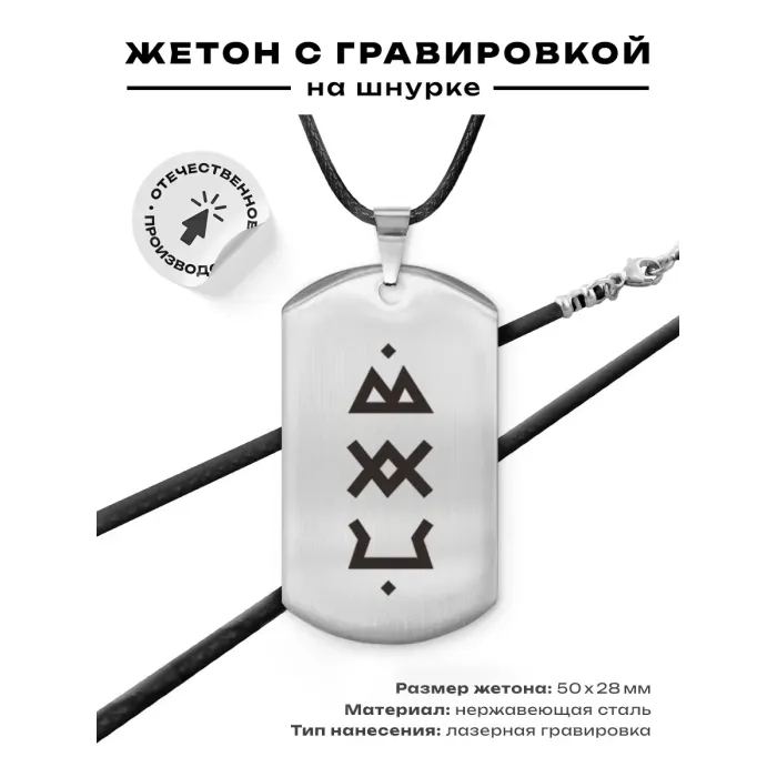 Размеры и комплектация: Размер жетона 50х28 мм. В комплекте шнурок с застёжкой. Упаковка — прозрачный пакетик.