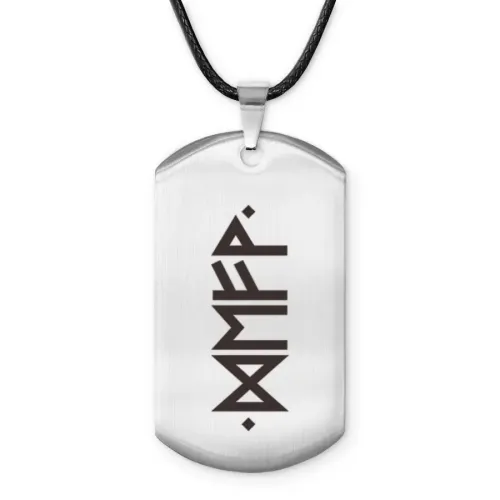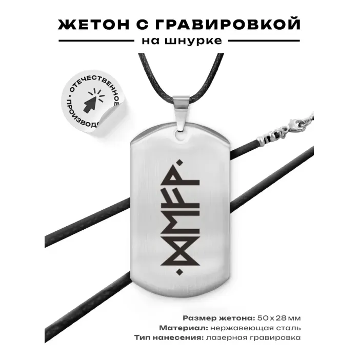 Амулет-жетон из полированной нержавеющей стали с рунической символикой.