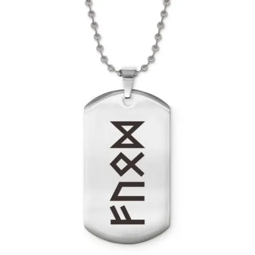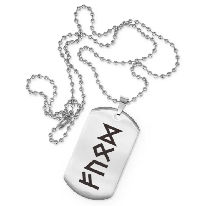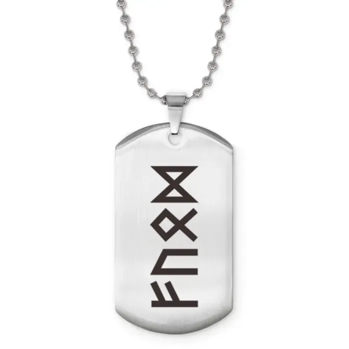 Сувенирный жетон на цепочке с изображением рун. Изготовлен из полированной нержавеющей стали.