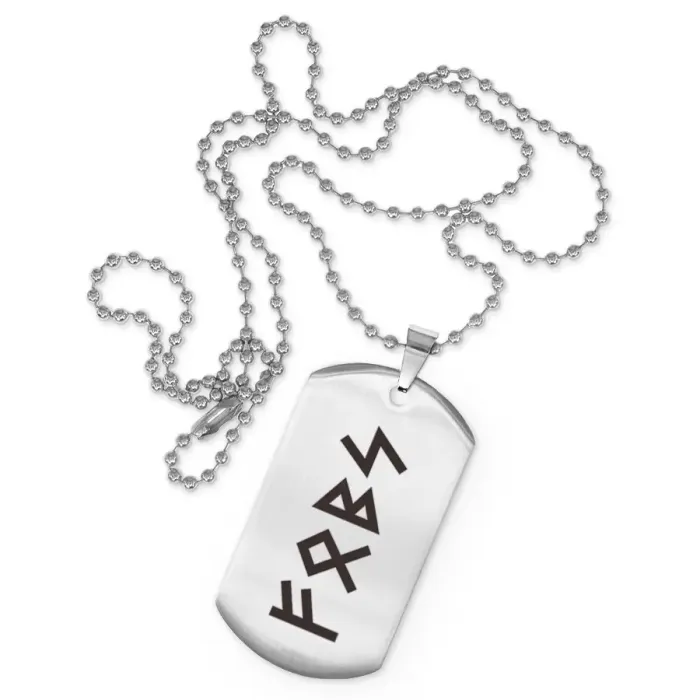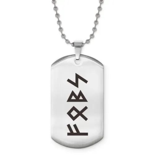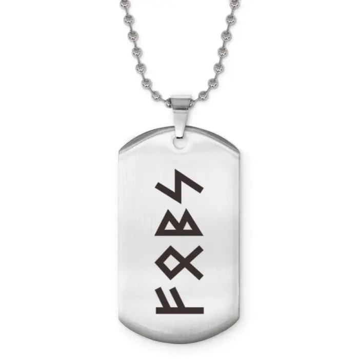 Сувенирный жетон на цепочке из нержавеющей стали с лазерной гравировкой рун.