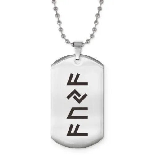 Размеры и комплектация: Размер жетона 50x28 мм. Длина регулируемой цепочки 60 см. Упаковка — прозрачный пакет.