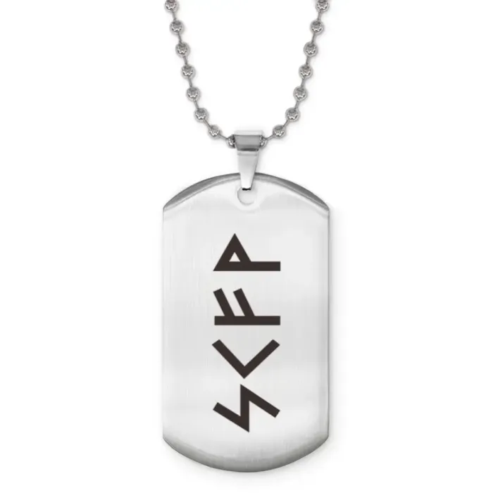 Сувенирный жетон на цепочке с символикой рун. Изготовлен из нержавеющей стали с лазерной гравировкой.