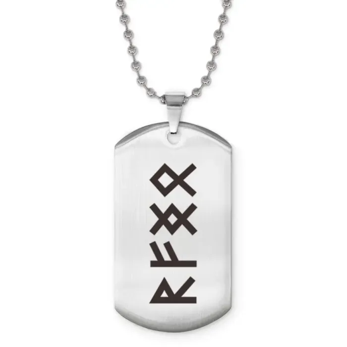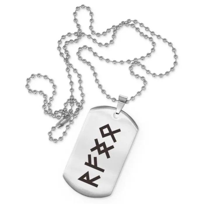 Сувенирный жетон на цепочке из нержавеющей стали с лазерной гравировкой рун.