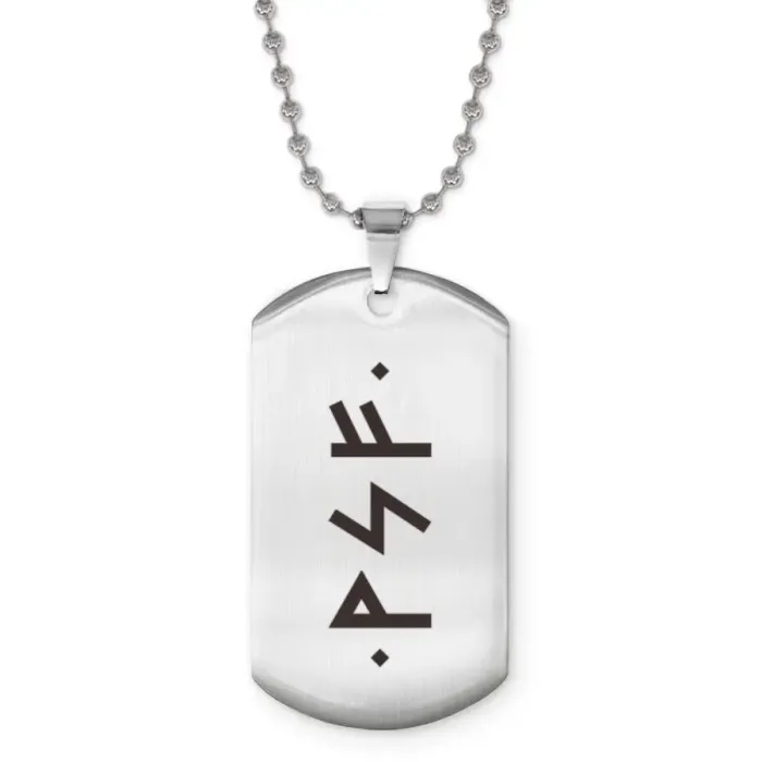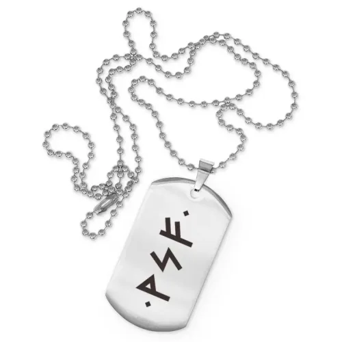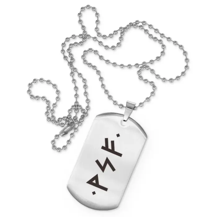 Сувенирный жетон на цепочке из нержавеющей стали с лазерной гравировкой рун.