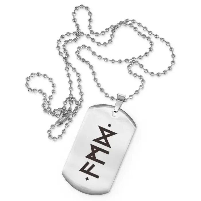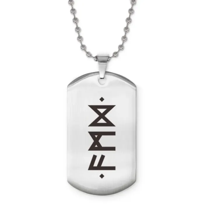 Сувенирный жетон на цепочке из нержавеющей стали с лазерной гравировкой рунических символов.