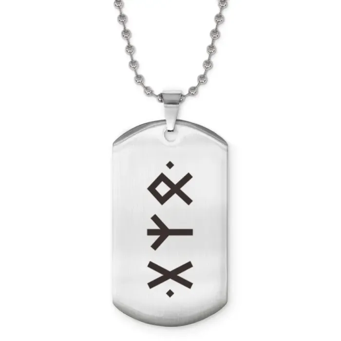 Сувенирный жетон на цепочке с лазерной гравировкой рун. Изготовлен из нержавеющей стали.